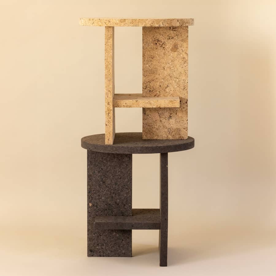 « J’ai immédiatement pensé au liège, un matériau qui m’a fasciné par sa durabilité et son faible impact environnemental. L’avantage du liège est qu’il peut être usiné à l’aide de machines CNC, permettant ainsi de réduire les coûts de main-d’œuvre par rapport à la version en bois. J’ai ajusté les proportions afin que les quatre composants de la table puissent être découpés dans une seule plaque de liège standard, réduisant ainsi les pertes de matière.