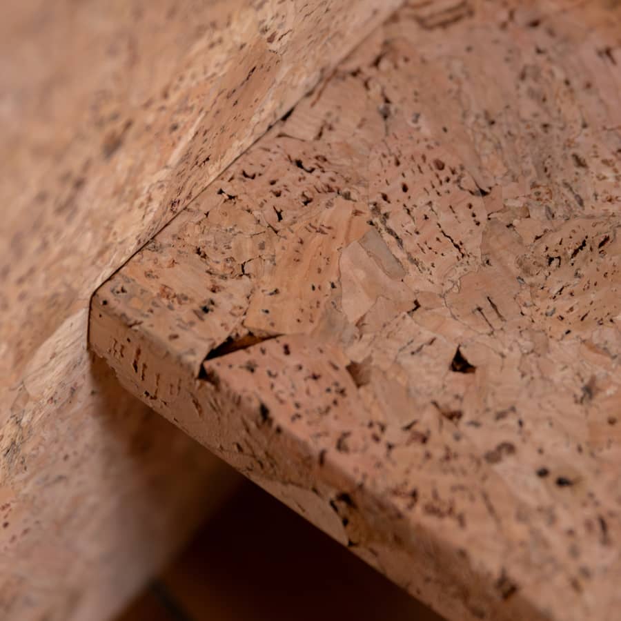 À cela s’ajoutent d’autres propriétés exceptionnelles : le liège est composé à plus de 50 % d’air, ce qui le rend extrêmement léger. Son élasticité et sa compressibilité lui permettent de s’adapter aux variations de température sans perdre de volume. Imperméable aux liquides, il est également hypoallergénique, antistatique et n’absorbe ni la poussière ni les odeurs. En outre, il offre une excellente isolation acoustique, résiste aux frictions et agit comme un retardateur de flamme. Enfin, son toucher naturellement agréable en fait un matériau idéal pour une table.